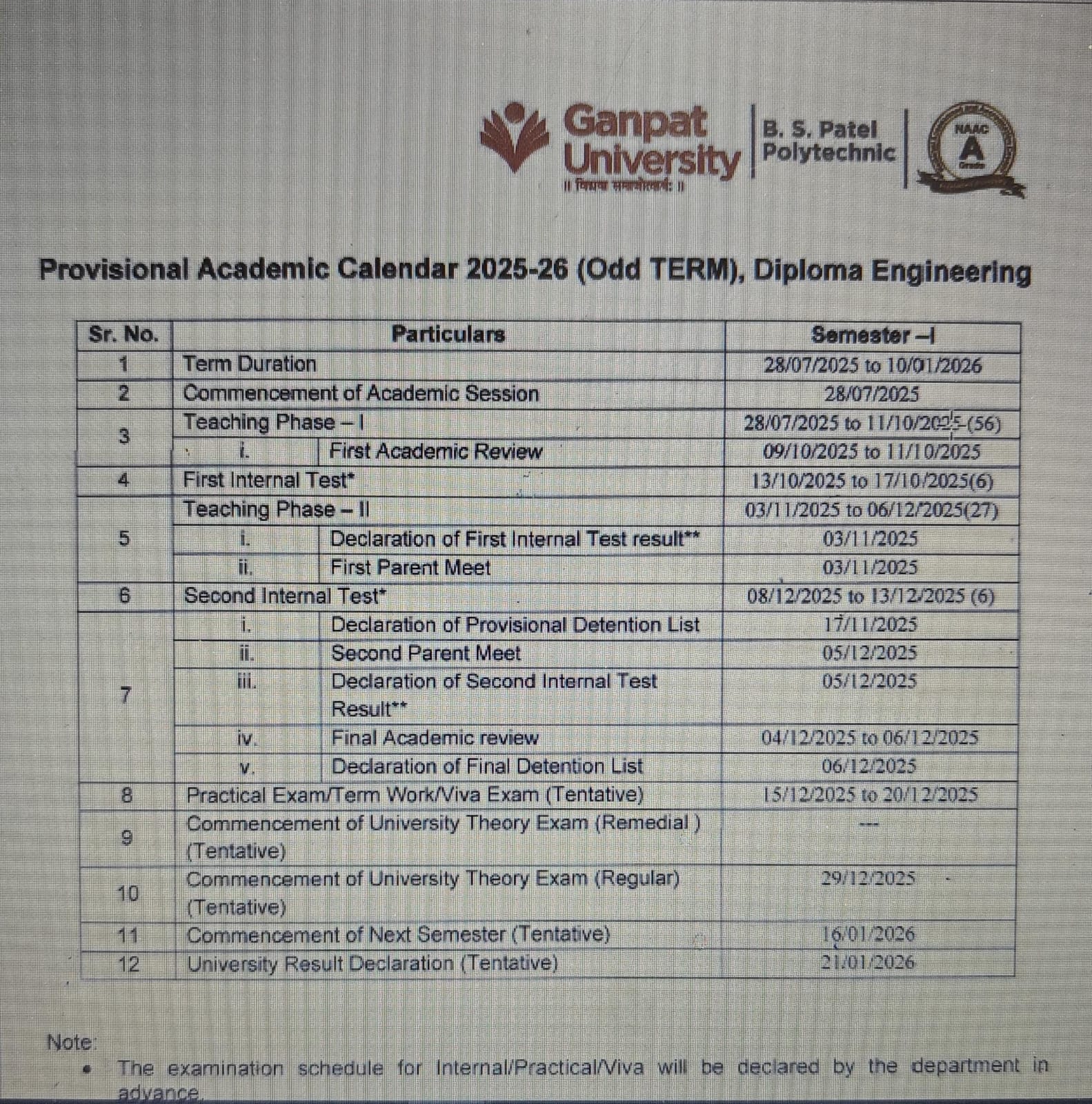| Diploma IOT 1st Semester Provisional Academic Calendar 2025-26 (ODD TERM) |